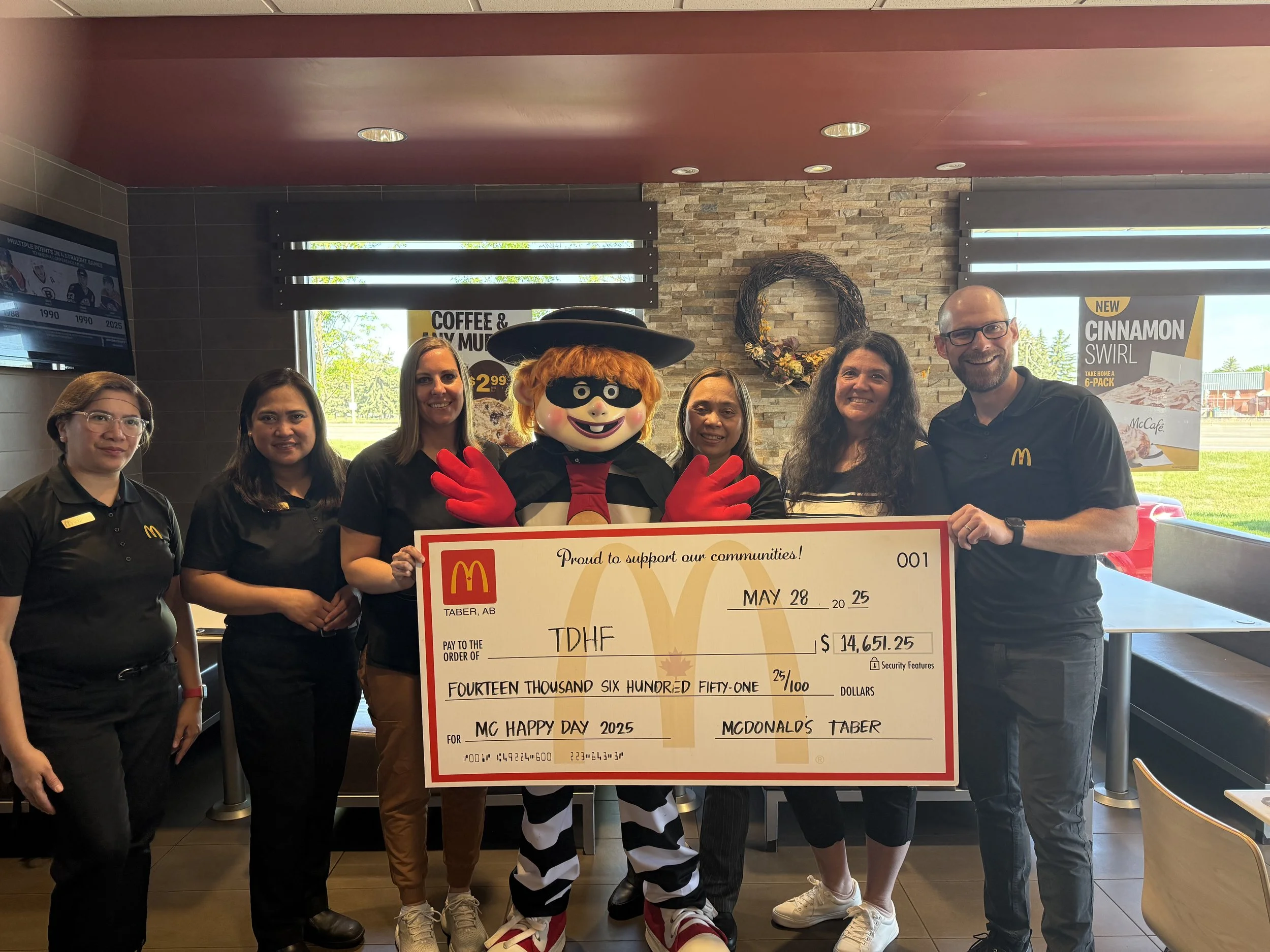 On May 8, 2025, the Taber McDonald’s brought the community together for its annual McHappy Day, a day dedicated to giving back. With every menu item purchased, a portion of the proceeds was set aside to support both The Taber & District Health Foundation and the Ronald McDonald House Charities.
